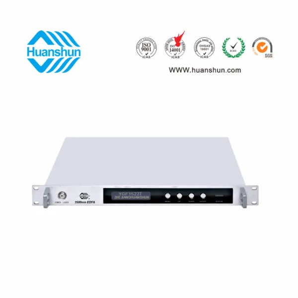 EDFA | YGF1518T | -5 ~ +10 d Bm輸入,標(biāo)稱(chēng)規(guī)格(18、19、20、21)功率放大輸出,并支持上調(diào)+0.5dB,下調(diào)-3dB,NF ≤ 5dB(0dBm時(shí));1U標(biāo)準(zhǔn)機(jī)箱,雙模塊熱插撥電源,AC90 ~ 255V或DC-48V供電,RJ45標(biāo)準(zhǔn)網(wǎng)管(支持SNMP、WEB) |